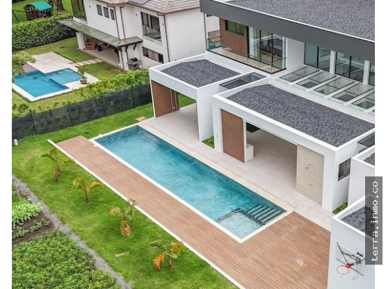 Área de entretenimiento con sala de cine privada para dsifrutar una pelicula en familia o porque no un partido de futbol de su equipo favorito , piscina climatizada, jardín y cancha de baloncesto.